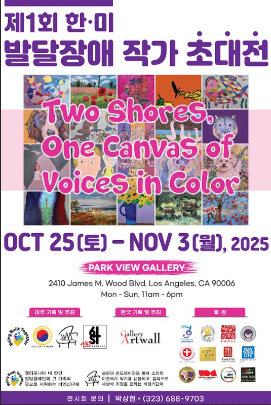발달장애인과 그 가족을 지원하는 비영리단체 BBT, 세계적인 소프라노 세라 장이 대표로 있는 WITH MUSIC, 대한노인회 미주총연합회, 문화예술 단체 아트앤젤레스가 공동 주최하는 ‘제1회 한미 발달장애인 작가 초대전’이 오는 25일부터 11월 3일까지 LA 소재 파크뷰 갤러리(2410 James M. Wood Blvd.)에서 열린다.