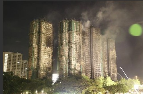 이어 "고온으로 대나무 비계(고층 건설 현장에 설치하는 임시 구조물)와 보호망이 탔고 불에 부서진 대나무가 떨어지며 불길이 다른 층으로 번졌다"고 설명했다.