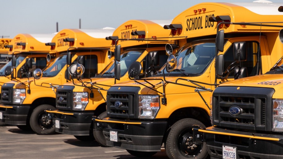 2028년 LA올림픽때관람객들을 수송하게 될 전기 스쿨버스들.