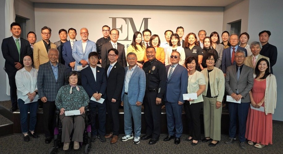이날 행사에는 스티브 강 LA 공공사업위원회 커미셔너, 도미니크 최 LAPD 국장 비서실장, 이현옥 시니어센터 회장,  옥타LA 정병모 회장, 이창엽 올림픽경찰서후원회장 등 40여 명이 참석해 축하했다.