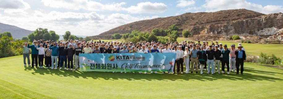 캘리포니아 한국기업협회(KITA·회장 김한수)가 지난 4일 리버사이드에 있는 오크쿼리골프클럽에서 전체회원사 대상 골프대회를 개최했다. 임원사 및 일반 회원사의 대표와 임직원, 후원사 등 160여명이 참가해 친목을 다지는 시간을 가졌다. 김한수 회장은 인사말에서 "많은 분들이 참석하여 주시고 좋은 행사가 되도록 신경 써 주신 모든 관계자 분들에게 감사를 드린다"며 "앞으로도 협회에 많은 관심과 참여를 부탁드린다" 고 말했다. 대회가 열리기 앞서 참가자들이 플래카드를 펼쳐들고 기념촬영을 했다. /KITA