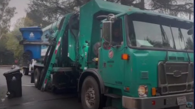 쓰레기 수거 트럭이 LA시내 주택가에서 쓰레기를 픽업하는 모습. /FOX11 News