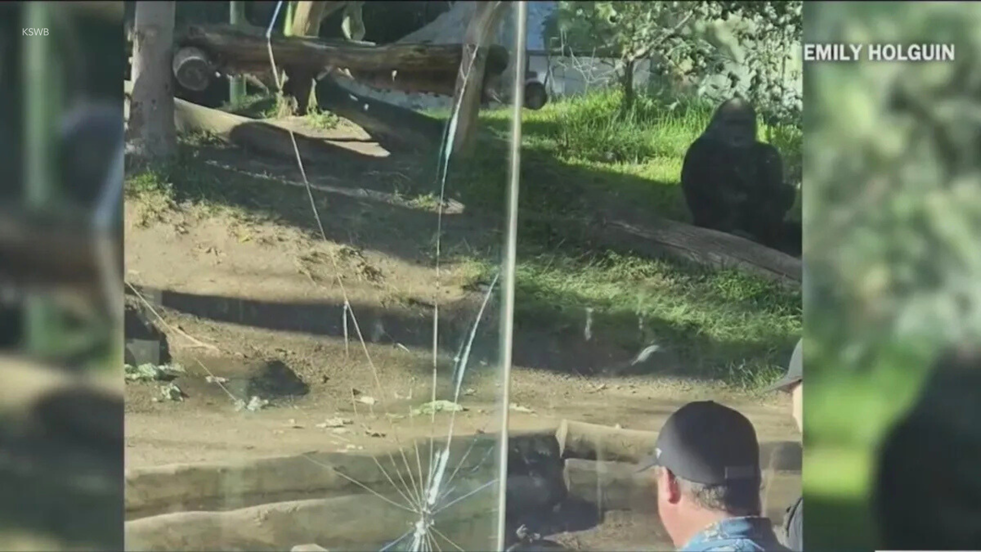 고릴라가 관람객들을 향해 돌진한 후 금이 간 보호용 유리. /KTLA