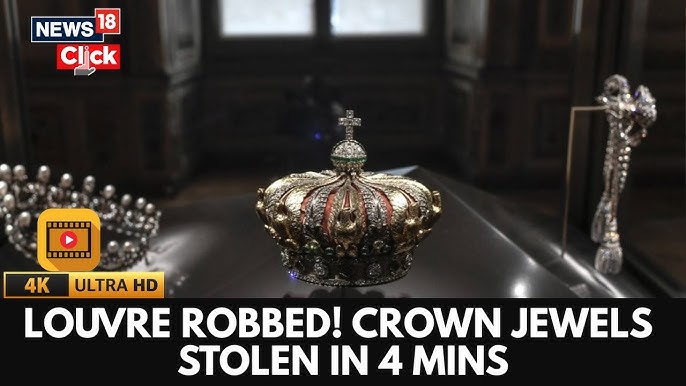 루브르 박물관 아폴론 갤러리에 전시된 나폴레옹 3세의 아내의 왕관. 강도단은 전시관에 침입해 보석 9점을 훔쳐 도주했다. /Youtube