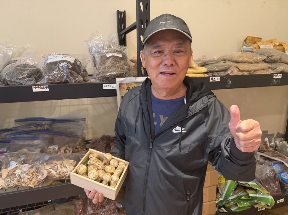 '알토란 농수산 직판장'의 안광용대표(사진)는 코리아타운에서 잔뼈가 굵은 올드타이머다. 그가 송이버섯에 주목한 것은 탁월한 효능 때문이다. 안 대표는“송이버섯은 일년 중 지금이 딱 제철"이라면서 “특히 항암효과, 피부미용, 혈액순환에 좋으며 특히 면역력에도 최고다. 미국산의 경우, 한국의 1/10 가격에 부담 없이 먹을 수 있는 것도 강점"이라고 말했다. 현재 1파운드에 50달러이며 2파운드(100달러)를 살 경우 찌개나 국에 넣어 먹을 수 있는 송이버섯을 반 파운드 더 증정하고 있다.