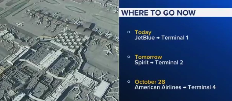 공항 당국은 22일부터 터미널 5 내 항공사들의 임시 이전 작업을 순차적으로 시작한다고 밝혔다. 이에 따라 젯블루항공은 이날부터 터미널 1에서 운항을 개시하고, 스피릿항공은 23일부터 터미널 2로, 아메리칸항공은 28일부터 터미널 4로 각각 이전한다.