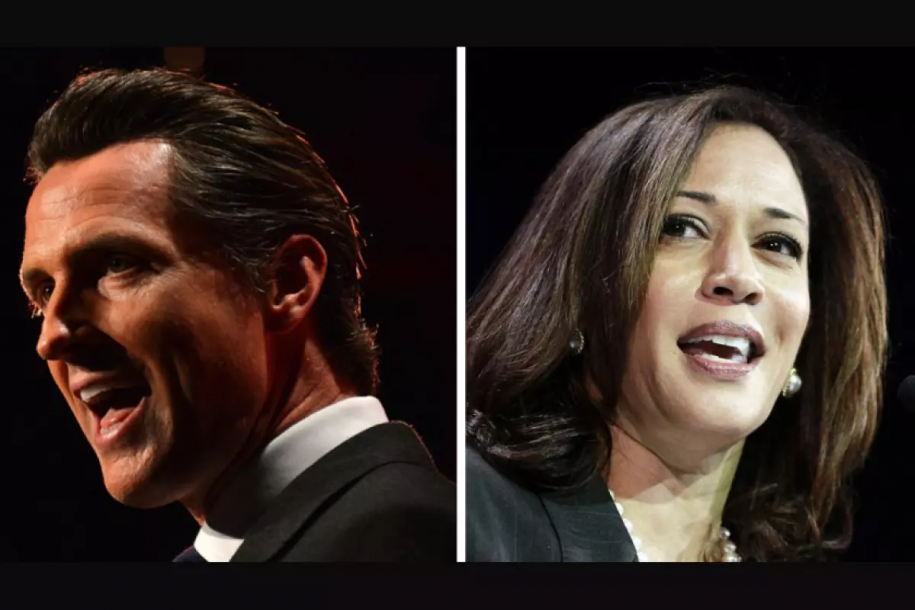 개빈 뉴섬(왼쪽) 캘리포니아 주지사와 카멀라 해리스 전 부통령. /AP