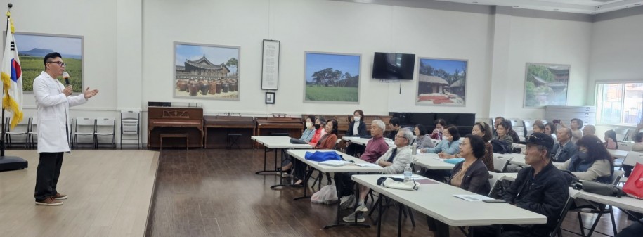 시니어센터 김현석 박사 초청 '생로병사와 암' 세미나 웹마스터 피플&스토리 10시간전 LA한인타운 시니어&커뮤니티센터(회장 이현옥·이하 시니어센터)는 지난 27일 시니어센터 강당에서 해부병리, 임상병리, 혈액병리 전문가인 김현석 박사를 초청해 의료세미나를 개최했다. ‘생로병사와 암’을 주제로 열린 이날 세미나에서 김 박사는 암 발생 3단계 등 최신 의학 정보를 전달해 참석자들로부터 큰 호응을 얻었다. 김 박사는 “물 많이 드시고, 숙면과 함께 스트레스를 절대 받지 말라”고 조언했다. 김 박사가 강연하고 있다. /시니어센터