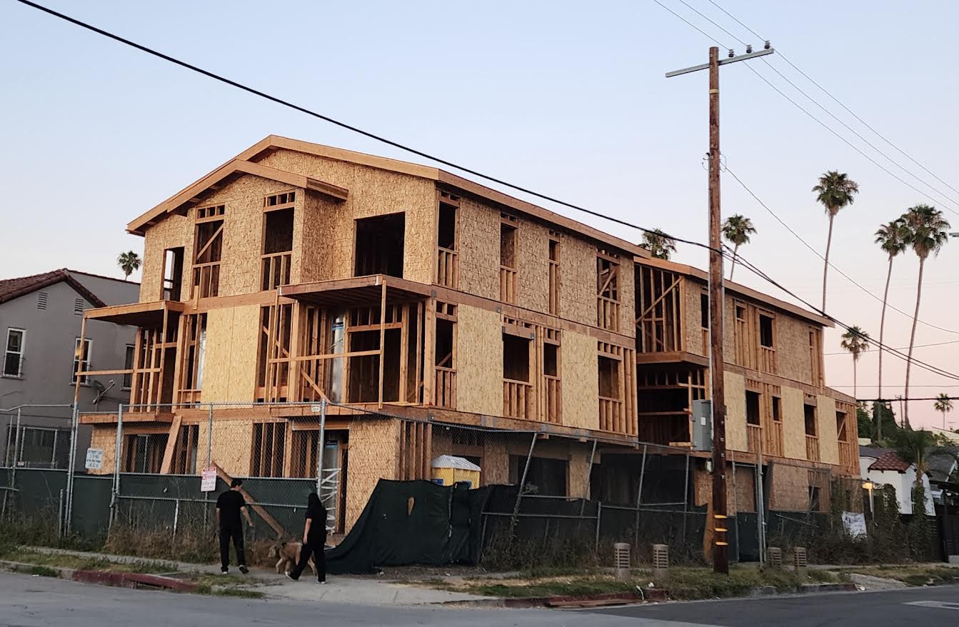 LA의 아파트 공급량이 늘면서 모처럼 렌트비가 하락세를 이어가고 있다. 한인타운 인근 아파트 공사 현장. /이해광 기자