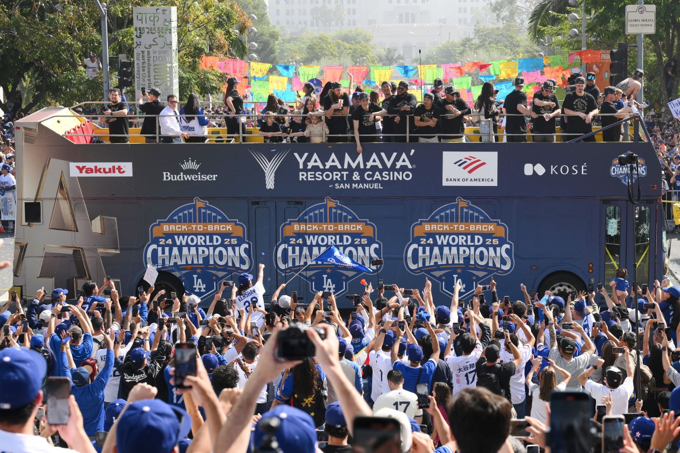 LA다저스 우승 축하 퍼레이드… '블루와 화이트'의 물결