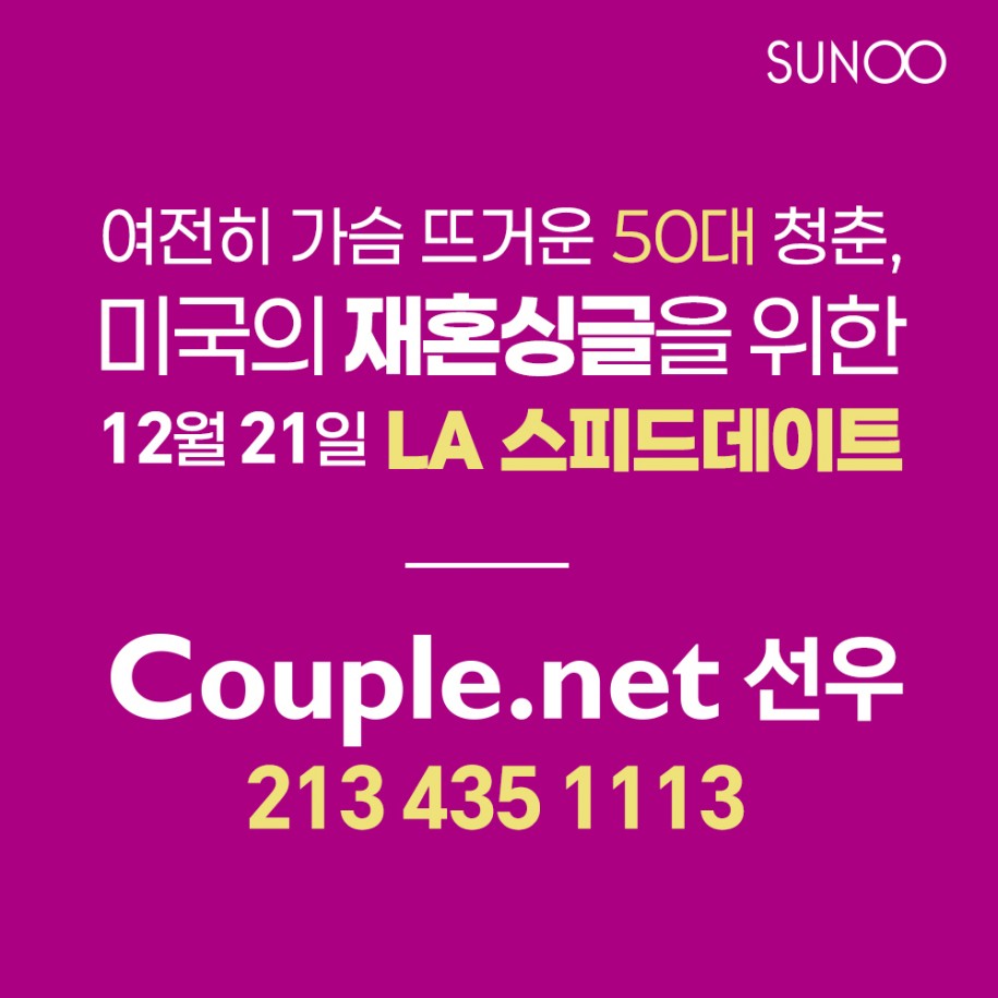 한편, ‘로맨스 그레이’ 미팅을 준비 중인 선우 커플닷넷의 이웅진 대표는 “50세 이상 싱글남녀의 만남은 초혼을 꿈꾸는 젊은 남녀들과는 다르다”며 “결혼이 목적일 수도 있지만, 데이트 상대 혹은 하루 만남 등 다양할 수 있는만큼 ‘느긋하게 인간적으로 신뢰를 바탕으로 자연스럽게 접근할 필요가 있다”고 조언한다. 문의 (213) 435-1113