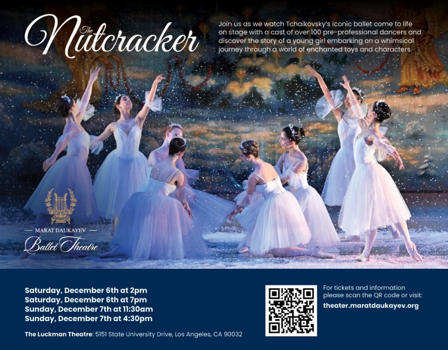 마랏 다카에브 발레학교(Marat Daukayev School of Ballet, 이하 MDSB)가 선보이는 고전 발레 명작 ‘호두까기 인형(The Nutcracker)’이 12월 6일(오후 2시, 7시)과 7일(오전 11시30분, 오후 4시30분) 총 4차례 캘스테이트LA 캠퍼스 내 1240석 규모의 럭맨파인 아츠콤플렉스(Luckman Fine Arts Complex)에서 관객들과 만난다.