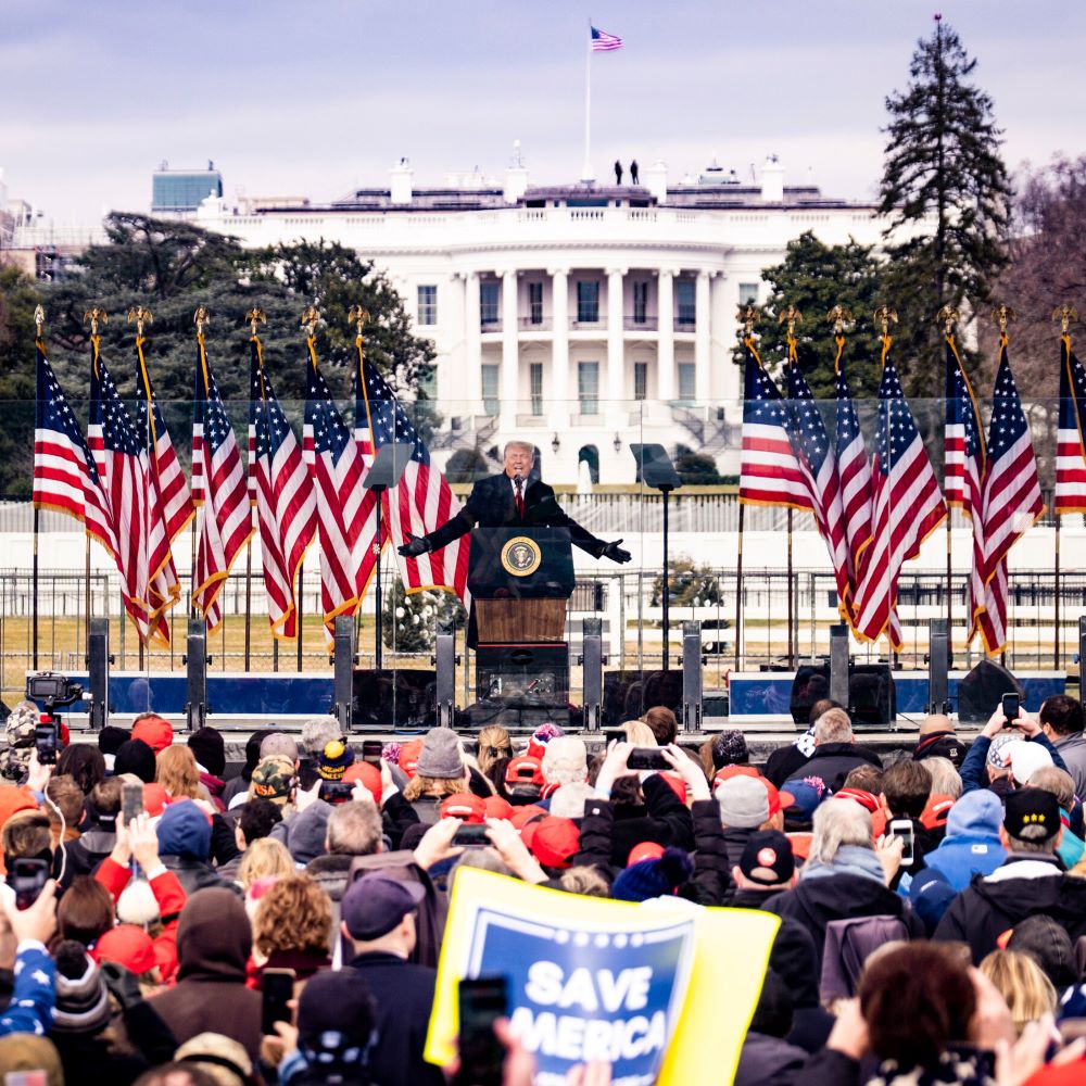 도널드 트럼프 대통령이 2021년 1월6일 의회 폭동이 발생하기 전 연설하는 모습. /AP