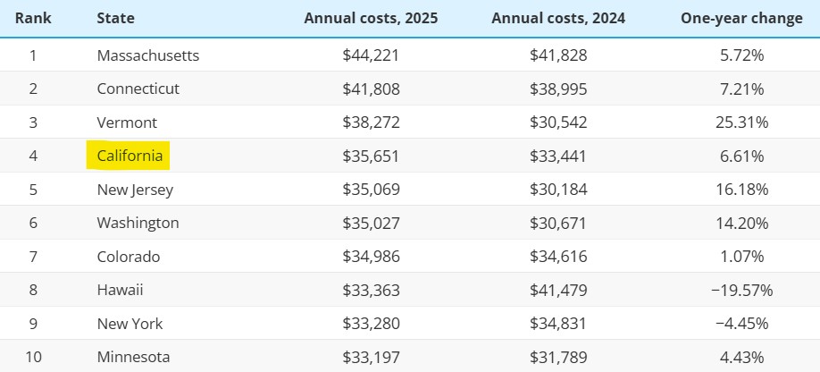 주별 비교에서 가주는 매사추세츠(4만4221달러·5.7%↑), 코네티컷(4만1808달러·7.2%↑), 버몬트(3만8272달러·25.3%↑)에 이어 네 번째로 양육비 부담이 높은 주로 나타났다. 반면 미시시피주는 양육비가 전년 대비 10% 상승했음에도 여전히 연간 2만달러 미만으로, 미국에서 가장 저렴하게 자녀를 키울 수 있는 주로 꼽혔다.