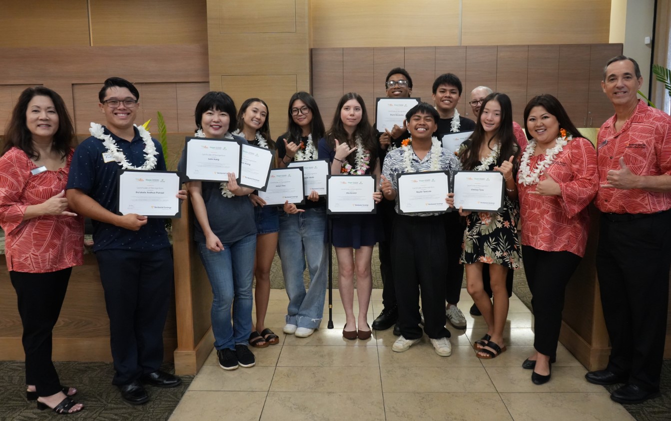 뱅크오브호프(행장 케빈 김)가 지난 22일 하와이 오하우 다운타운지점에서 지역 고등학생 및 대학생 20명에 각각 1000달러의 ‘Hope 4 the Future’ 장학금을 수여했다고 밝혔다. 이번 프로그램은 뱅크오브호프의 연례 장학사업인 호프장학금(Hope Scholarship)의 일환으로 지난 4월 2일 뱅크오브호프와 테리토리얼 세이빙스은행(Territorial Savings Bank) 합병을 기념해 새롭게 마련됐다.