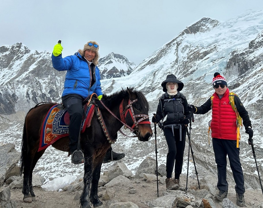 우리 팀중 몇 명은 고산증세가 심했던 모양이다. 힘든 모양인지 늦게 올라왔다. 그러나 우리 팀이 목적한 EBC에 모든 인원이 도착했으니 2년간 별렀던 원정은 성공한 것이다. 날씨가 나빠지기 시작했다. 이럴 땐 빠른 하산, 탈출이 필요하다. 서둘러 고락셉으로 하산했다. 다음날 아침 눈보라가 치는 가운데 샘김이 말을 타고 하산했다. 말은 히말라야에서 ‘택시’ 역할을 하기도 한다. 부상이나 고산증이 심한 사람을 태우고 내려가기도 하는 것이다. 팀원 중 하경철이 말을 제일 많이 이용한 사람이었다. LA에서 출국 전 운동을 하다 무릅을 다쳤는데 오랫동안 별로 온 원정이니 포기를 할 수 없었다. 말이 없어 그런 사실을 나중에 알 수 있었다.