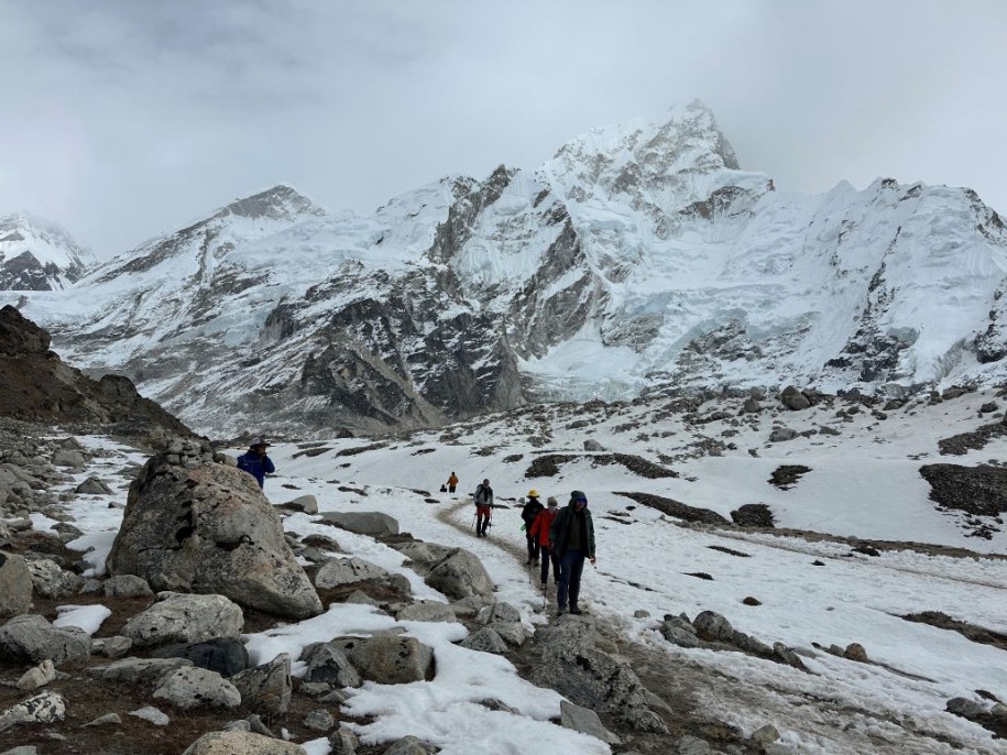 애초 예약한 롯지는 너무 시설이 안 좋다. 다른 곳의 롯지를 찾아 옮기고 일단 짐을 풀었다. 점심을 먹은 후 우리팀의 마지막 목적지인 EBC로 향했다. 이제 우리는 쿰부빙하 고락셉 모레인(moraine) 빙퇴석 지대를 걷고 있다. 모레인은 빙하에 의해 운반되고 쌓인 퇴적물. 이 지역은 거친 암석과 모래로 이루어져 있다. 모레인 지대를 걸어 EBC로 산행을 시작했다.