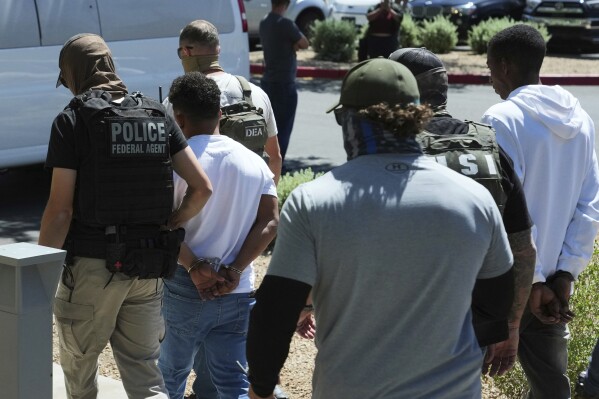 ICE 요원들이 불체자를 체포하는 모습. /AP