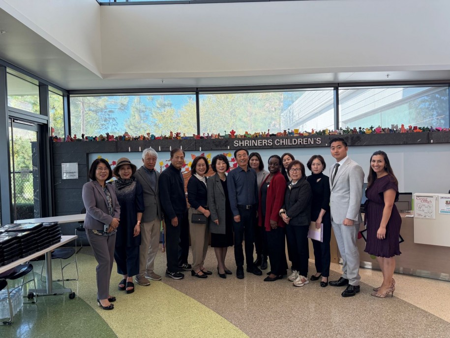 남가주충청향우회(회장 명원식)와 청소년 봉사단체 파바월드는 지난 2일 LA슈라이너 아동병원을 방문해 직원들과 환자들에게 총 150개의 런치 도시락을 전달하며 따뜻한 응원의 마음을 전했다. 메뉴는 한국문화를 알리기 위해 코리안 바비큐로 준비했다. 이날 두 단체는 점심 나눔봉사와 함께 병원 운영을 위한 기부금도 전달하며 지역사회에 대한 지속적인 도움과 나눔활동을 실천했다. 명원식(왼쪽 7번째) 회장 등 충청향우회·파바월드 회원들이 병원 관계자와 기념촬영을 했다. /남가주충청향우회