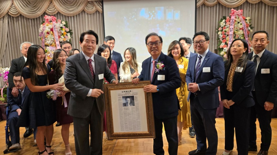 고석화 뱅크오브호프 명예회장 은퇴식 웹마스터 사회 2시간전 <위 사진>미주조선일보 이기욱(왼쪽) 대표가 고석화 회장에게 10일자 본지 미주판 1~2면에 게재된 은퇴 특별인터뷰 기사가 담긴 대형 액자를 선물로 증정하고 있다. /김문호 기자<아래 사진>고석화 회장이 손녀로부터 은퇴 축하 꽃다발을 전달받으며 환한 미소를 짓고 있다. /김문호 기자