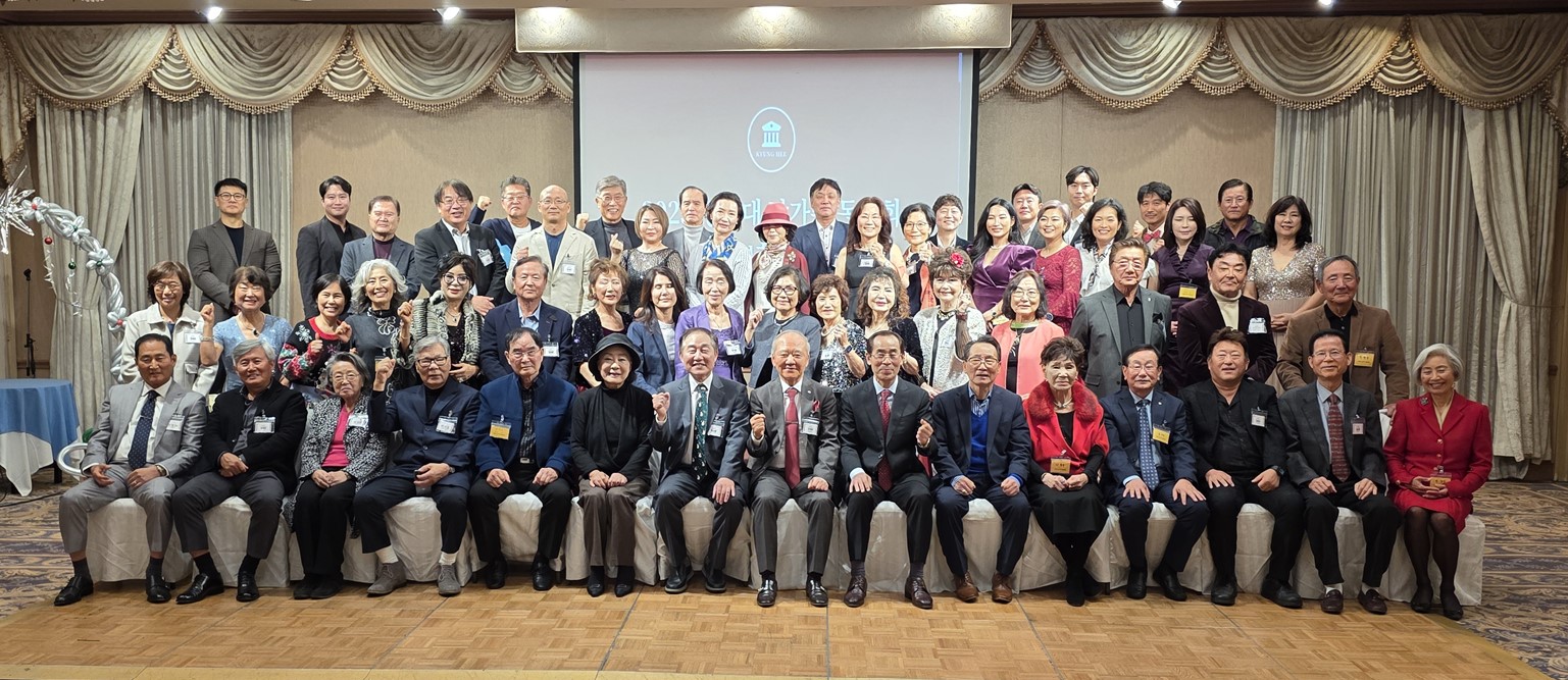 경희대학교 남가주총동문회가 지난 13일 LA한인타운 옥스포드팔레스호텔에서 총회 겸 송년모임을 성황리에 개최했다. 이날 행사에는 90여 명이 참가했으며 이상명 차기회장에 대한 총회 인준절차가 있었다. 또, 내년 9월 21일 경희대에서 열릴 미원평화상 시상식과 2027년 워싱턴에서 개최되는 북미주연합동문회에 적극 참석할 것을 다짐했다. 행사 후 이상명 남가주총동문회 신임회장, 조병태 북미주총동문회 전 회장, 김기형 북미주총동문회 회장( 앞줄 왼쪽 일곱 번째부터 오른쪽으로) 등 참석자들이 한자리에 모여 기념촬영을 했다. 조병태 회장 부부(가운데 두 분)와 동문들이 기념포즈를 취했다.(아래 사진) /경희대 남가주총동문회