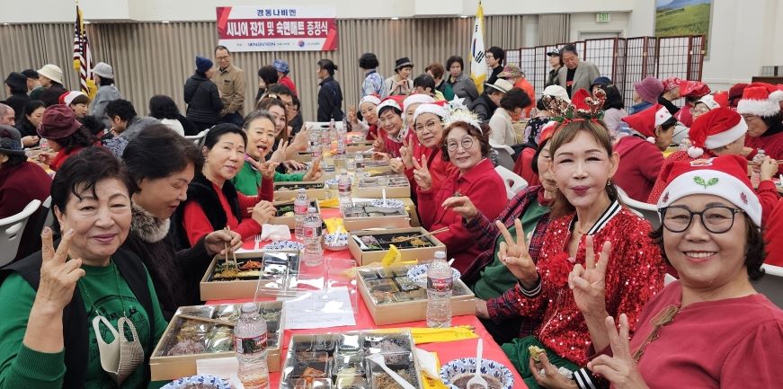 한인타운 시니어센터(회장 이현옥)와 경동나비엔(북미법인장 김택현) 공동주최로 올해 10년 째를 맞은 '동지팥죽 시니어 잔치' 및 숙면매트 증정식'이 16일 센터 2층 강당에서 성황리에 열렸다. 이날 행사에 참석한 200여 한인 시니어들은 주최 측이 준비한 팥죽과 점심도시락을 먹고, 시니어센터 수강생들이 준비한 하모니카 연주, 시니어수다방의 캐럴 합창, K-팝 댄스를 감상하며 즐거운 시간을 보냈다.