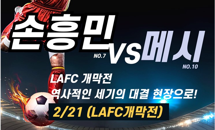 손흥민(LAFC) 대 리오넬 메시(인터 마이애미), 내년 2월 열릴 글로벌 축구영웅들의 메이저리그 사커(MLS) 개막전 대결에 팬들의 가슴은 벌써부터 설렌다. 경기는 서부시간으로 2026년 2월 21일 오후 6시30분 LA콜로세움에서 열리며, 한인 팬들의 관람 편의를 위해 LA 한인여행사들도 관련 상품을 내놓고 참관단을 모집한다.