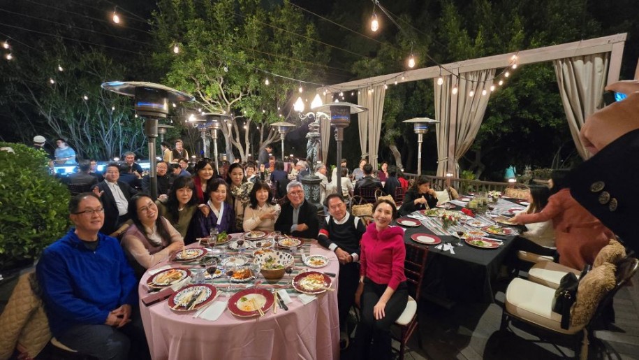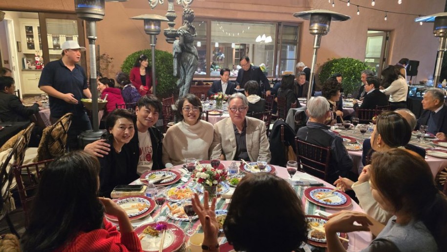 "새해 복 많이 받으세요." 가는 해의 아쉬움을 달래고 새해를 더욱 힘차게 맞이하려는 로컬 모임이 지난 22일 하기환 한남체인 회장의 패서디나 저택에서 있었다. 이날 모임엔 한인타운 시니어센터 이사들과 LA한인상공회의소 임원 및 여성분과위원 등 80여 명이 참석해 한해의 활동을 돌아보며 신년 덕담을 나눴다. 만찬을 하면서 흥이 난 멤버들은 즉석에서 노래자랑도 하며 즐거운 시간을 가졌다. 멤버들이 '송구영신'의 표정으로 손을 흔들며 포즈를 취했다.(위) 테이블 별로 포즈를 취한 아래 사진들 속에 하기환 회장과 A&E 기독교재단 이용기 이사장, 미주조선일보 이기욱 대표, 신영신 시니어센터 이사장, 조앤 이 LA한인상의 여성분과위원장, 로라 박 이화웨딩한복 대표, 신영임 삼호관광 부사장, LA한인상의 정상봉 회장과 곽문철 이사장, 최명진 LA한인상의 전 회장, 김미향 LA한인상의 부회장, 지나 김 LA한인상의 전 부회장, 한국 프로야구 한화 이글스 김경문 감독 부부(박선용 타워에스크로 대표), 비비안 김 시니어센터 이사, 강소아 애드크레시안 대표 등의 모습이 보인다. /시니어센터