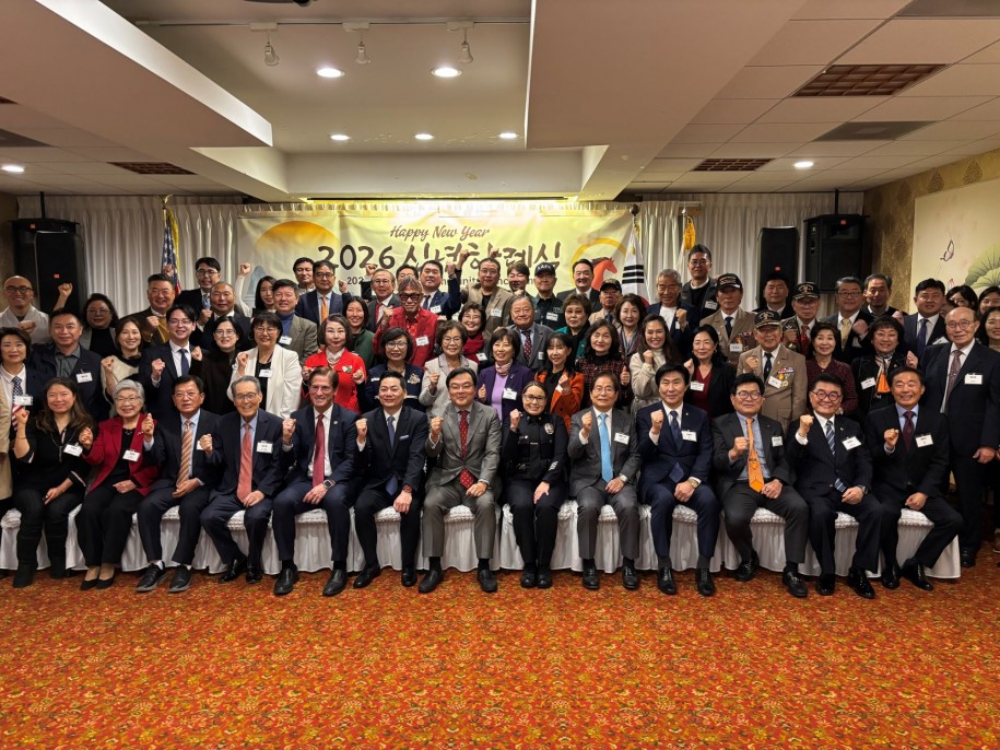 LA한인회(회장 로버트 안)는 5일 LA한인타운 용수산 식당에서 한인회 임원 및 이사, 한인사회 리더, 주류 공직자 등 150여명이 참석한 가운데 ‘2026 신년하례식’을 개최했다. 이날 행사에는 로버트 안 회장, 스티브 강 이사장, 정상봉 LA한인상공회의소 회장, 장병우 LA민주평통 회장, 명원식 파바월드 회장, 임종택 세계한식총연합회 총회장, 네이선 호크먼 LA카운티 검사장, 레이첼 로드리게스 LAPD올림픽경찰서장 등이 참석해 신년인사를 나누고 한인회를 격려했다. 로버트 안 회장은 신년사에서 “2025년은 물가상승, 관세 등으로 많은 비즈니스들이 고통을 받은 해였다”며 “병오년 새해에는 한인사회가 하나가 돼 슬기롭게 위기를 극복해 나가자”고 말했다. 참석자들이 한 자리에 모여 기념촬영을 했다. /구성훈 기자