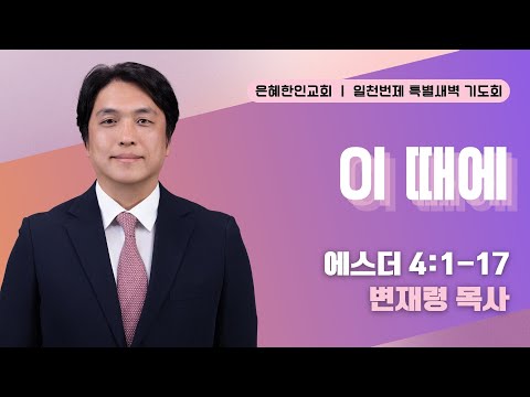 [은혜한인교회 일천번제 특별새벽기도] 두려울 때 하나님 앞에 서라 • 에스더 7:1-10 • 김병진 목사 •…