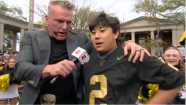33야드 필드골을 성공시켜 50만달러의 상금을 차지한 타일러 황(오른쪽)군이 팻 매카피와 인터뷰에서 소감을 밝히고 있다. /ESPN밴더빌트대 2학년 타일러 황군'칼리지 게임 데이' 이벤트서33야드 필드골 멋지게 성공밴더빌트대 한인학생 타일러 황군이 스포츠 전문 케이블&…