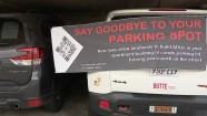 한인타운 5가와 킹슬리 인근 아파트 주차장에 "주차장과 '굿바이' 하라"는 내용의 배너가 걸려 있다. /ABC7 News건물주 ADU 전환, 세입자 반발"권리 침해" vs "합법 공사" 갈등…LA한인타운의 한 아파트 건물주가 세입자들의 임대 계약상 주…